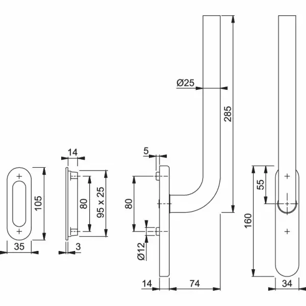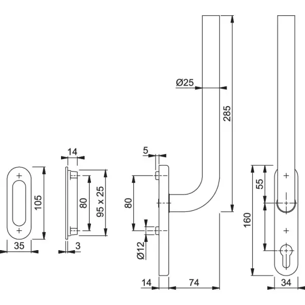 Bonn - Klamka HS ze stali szlachetnej do drzwi podnoszono-przesuwnych