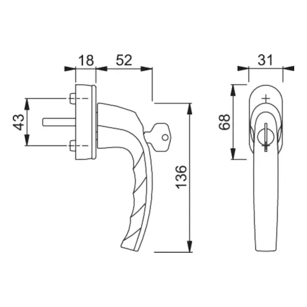 Atlanta Secu100 - Window Handle with Key, Brown F8707