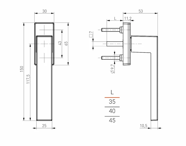 Window handle in aluminium Dublin by Medos.