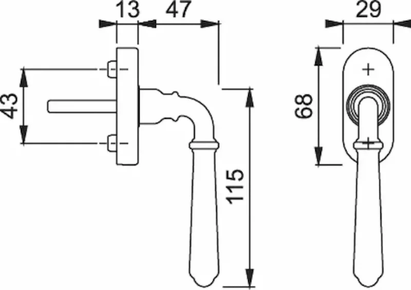 Elba Window Handle Brass Antique Silver F56 | HOPPE | Klamki24.pl