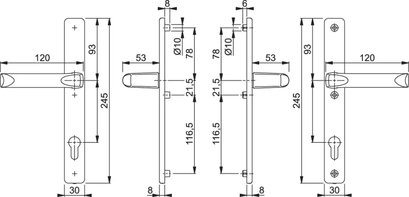 Handle set HOPPE London on a narrow 30 mm aluminum plate for profile doors: