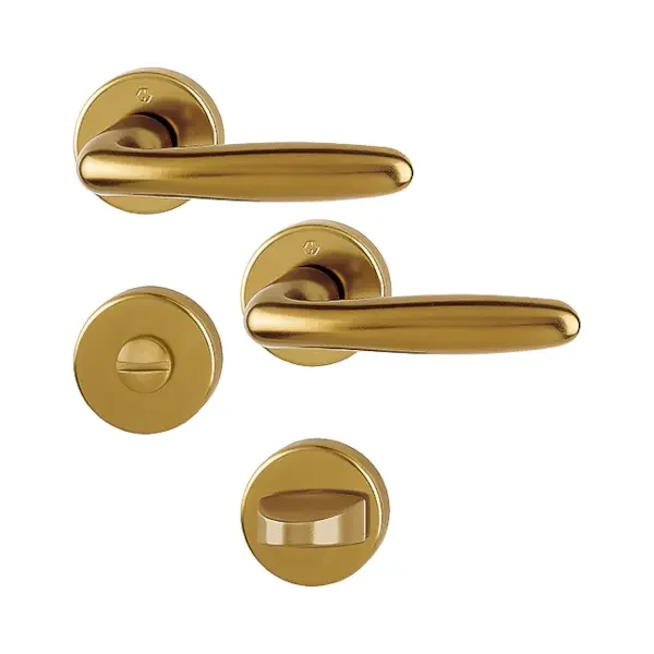 Verona - Set of Door Handles with Round Rosette in Aluminium, WC Version, Vintage Gold F4
