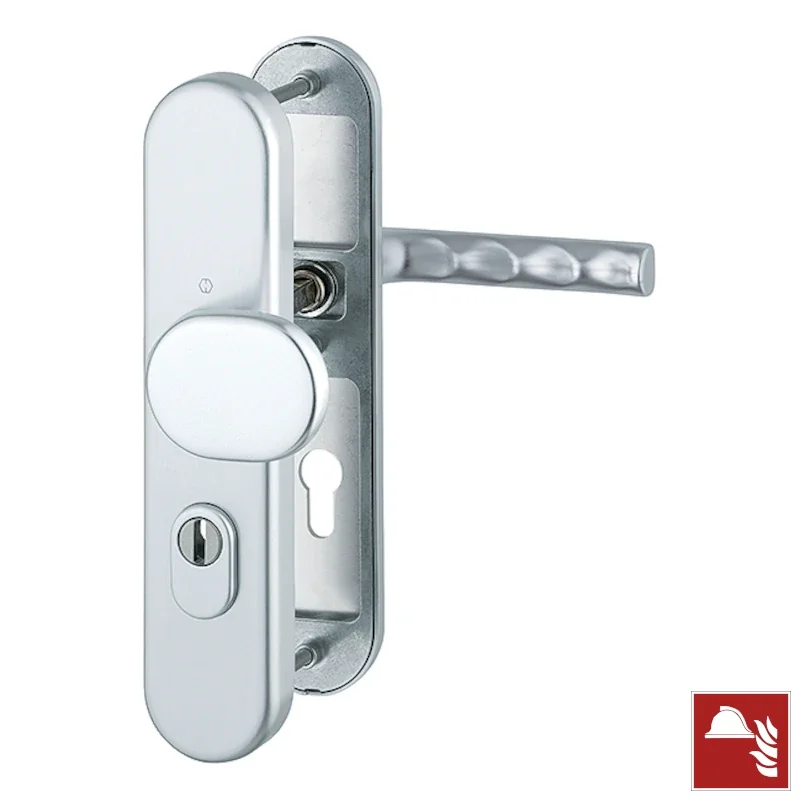 Komplet pochwyt-klamka Hamburg do drzwi ppoż z ochroną wkładki, kolor srebrny F1