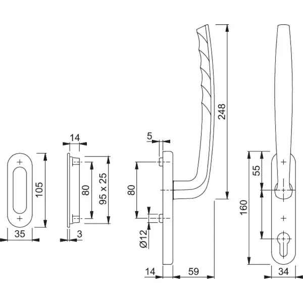 Komplet klamek HOPPE New York z aluminium do drzwi balkonowych podnoszono-przesuwnych z wbudowanym uchwytem od strony zewnętrznej