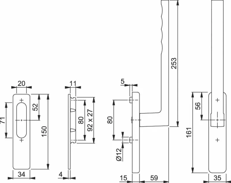 Toulon - Klamka HS do drzwi podnoszono-przesuwnych, stalowy F9