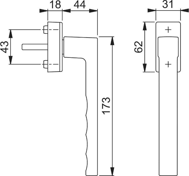 - Trzpień: pełny HOPPE, zakres regulacji długości trzpienia 10mm, bezstopniowa regulacja poprzez wbudowaną sprężynę wewnątrz klamki